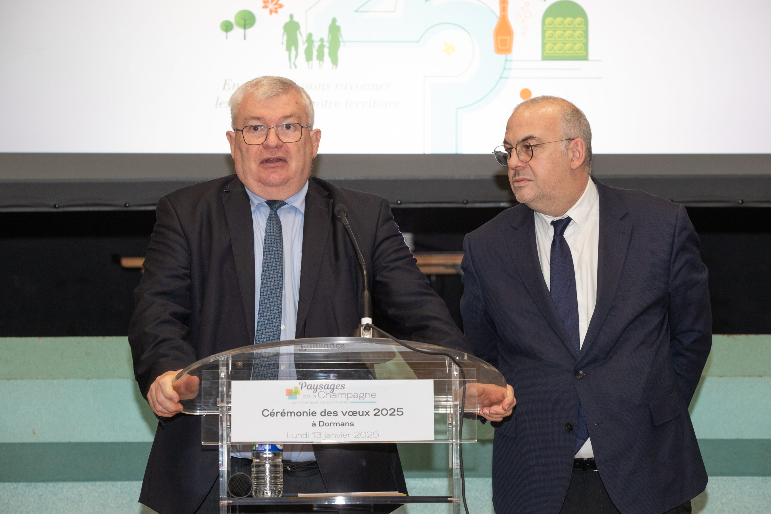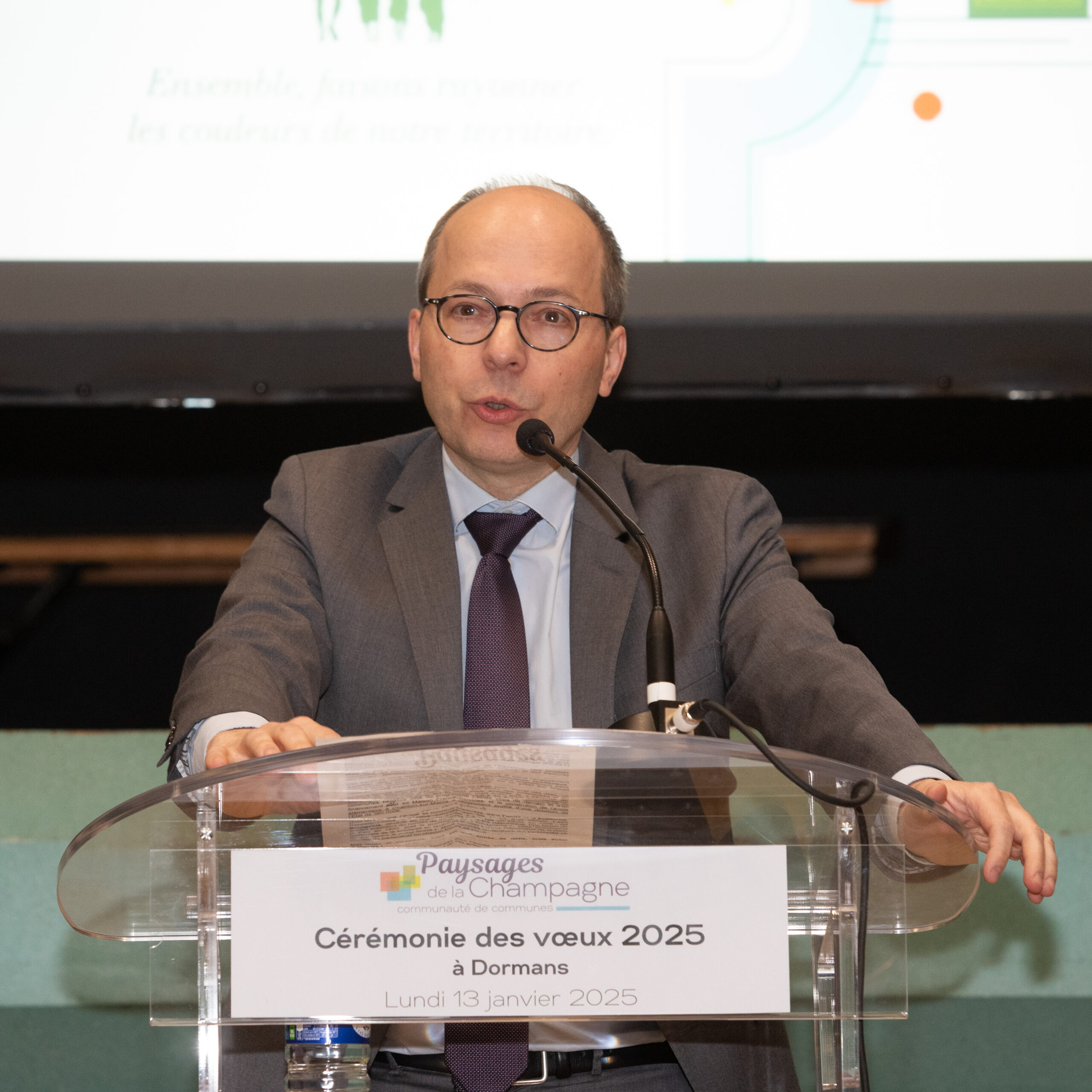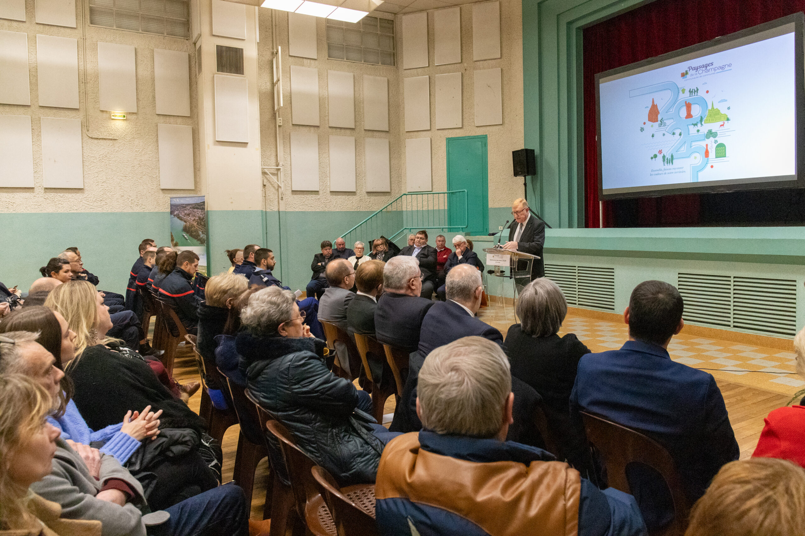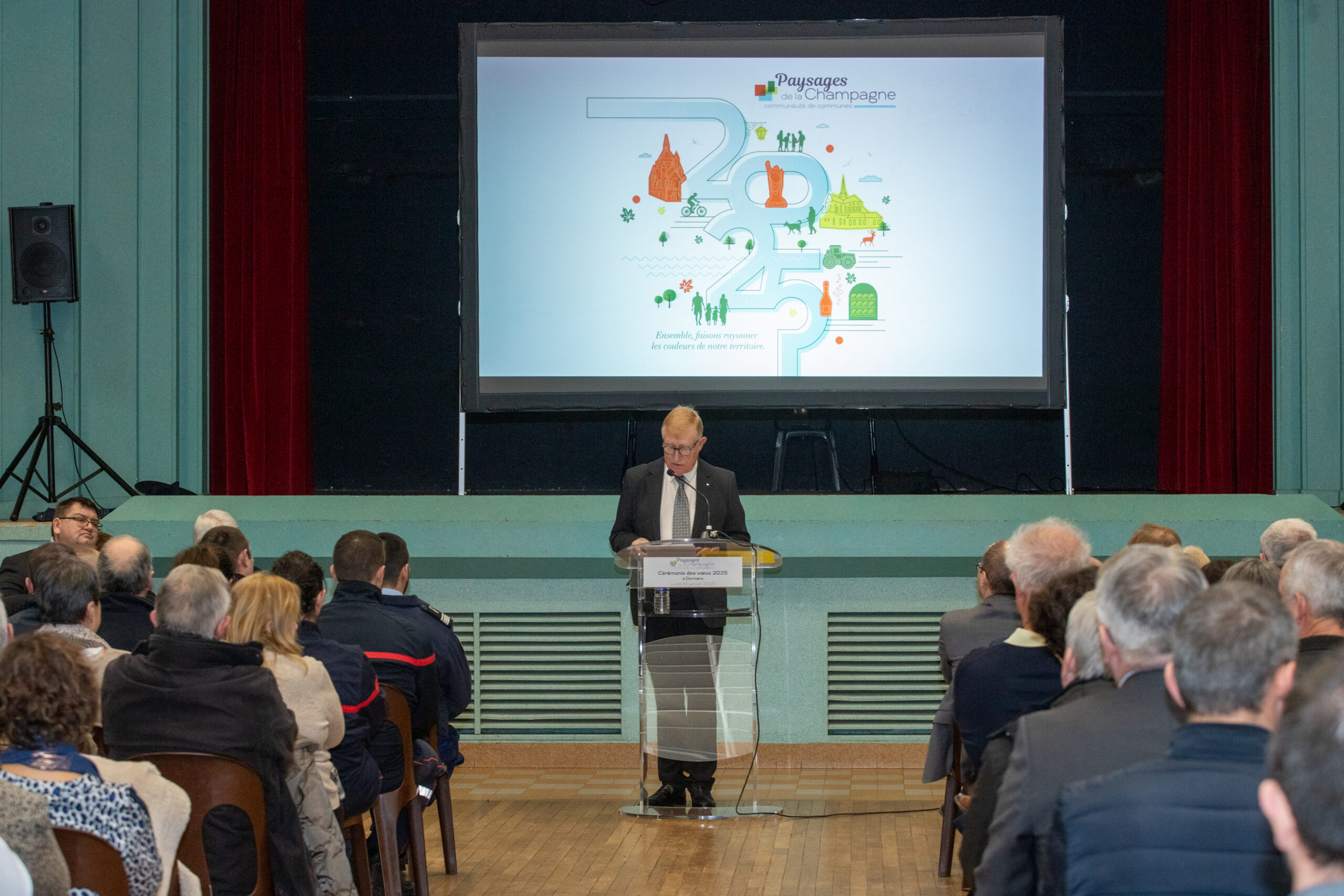 Le lundi 13 janvier 2025, environ 220 personnes se sont rassemblées à la salle des fêtes de Dormans, pour assister à la cérémonie des voeux de Régis COUTANT, Président de la Communauté de Communes des Paysages de la Champagne.