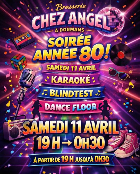 La Brasserie Chez Angel à Dormans vous invite à une soirée 100 % années 80, le Samedi 11 avril 2026.