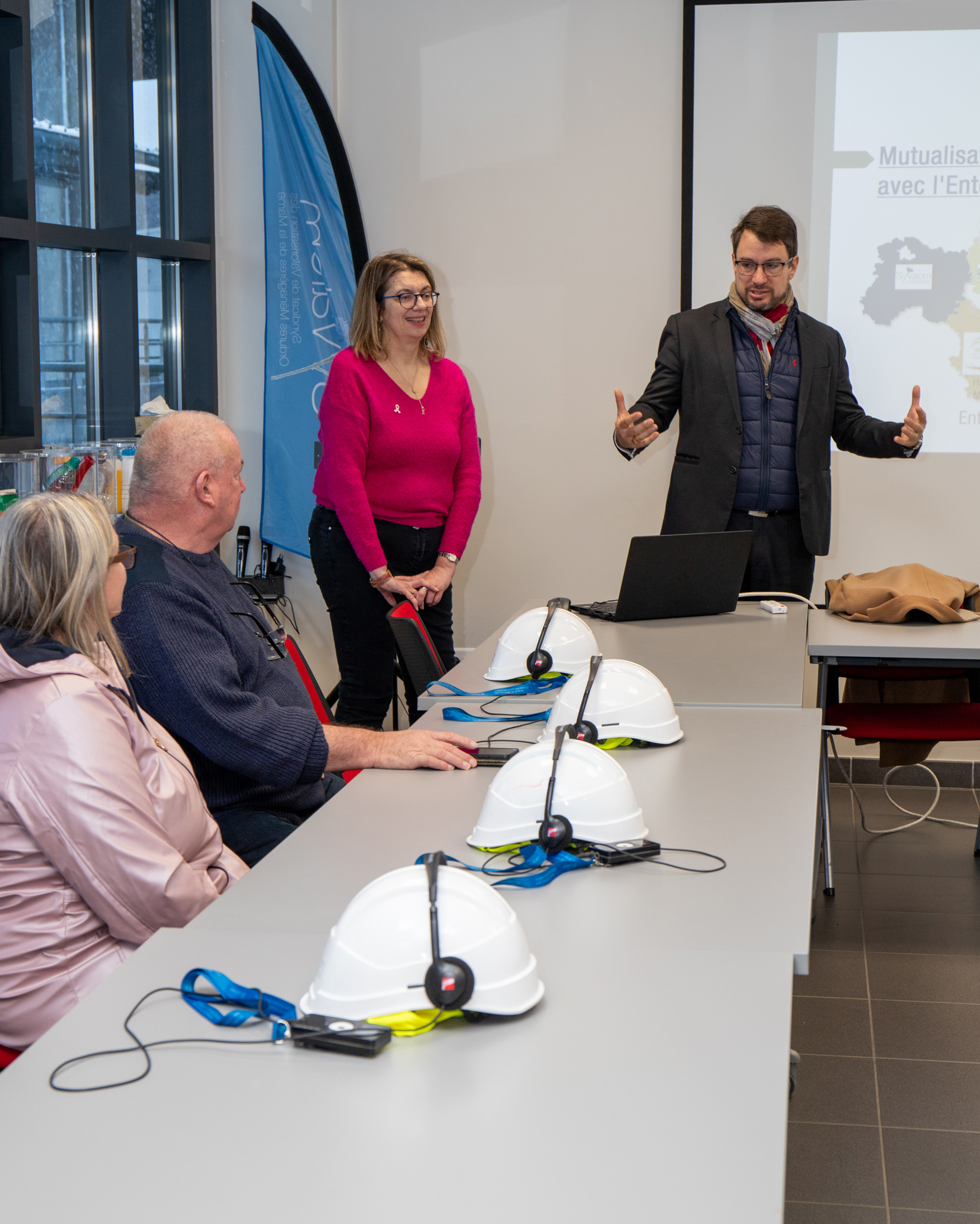La délégation était accueillie par Julien VALENTIN, Président du SYVALOM, et guidée tout au long de la matinée par Estelle POISSY, chargée de communication, qui a présenté en détail le fonctionnement des équipements et les enjeux du tri aujourd’hui.