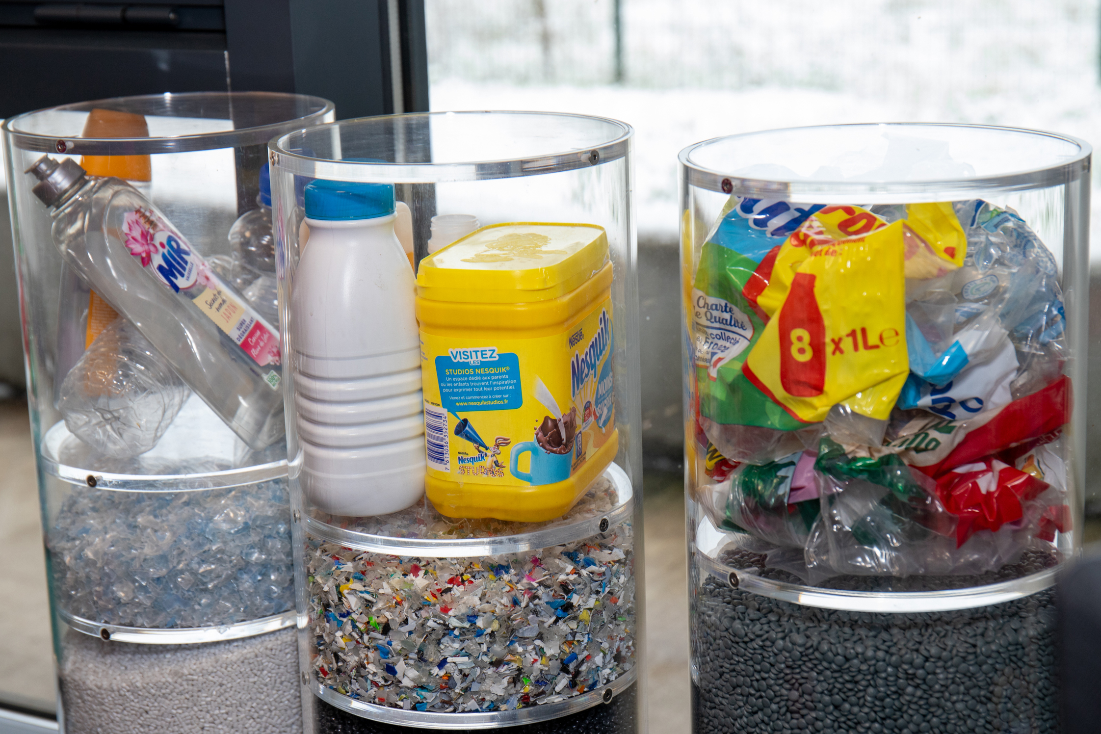- Plastiques : une fois triés par type (PET, PEHD, etc.), les plastiques sont envoyés dans des usines spécialisées pour être lavés, broyés puis transformés en granulés. Ces granulés permettent la fabrication de nouveaux objets : bouteilles, flacons, fibres textiles, pelles à neige, arrosoirs, etc.
