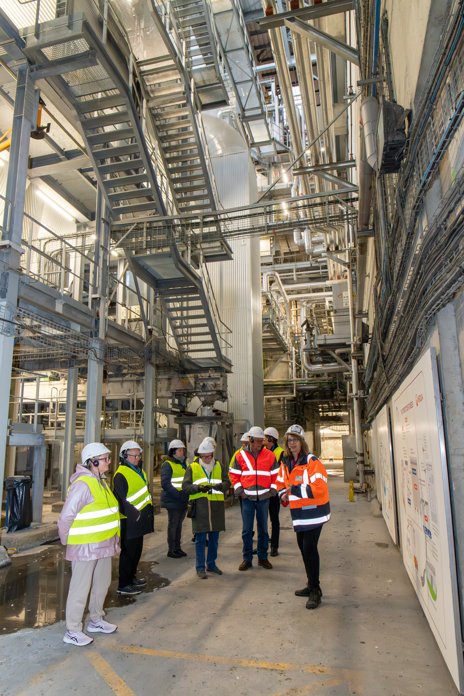 La seconde partie de la visite s’est déroulée à l’Unité de Valorisation Énergétique par incinération de La Veuve, où sont traités les déchets non recyclables (ordures ménagères résiduelles, refus de tri de Syvaltri, refus de crible de l’Unité de Valorisation Agronomique et certains encombrants).